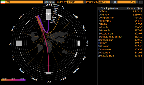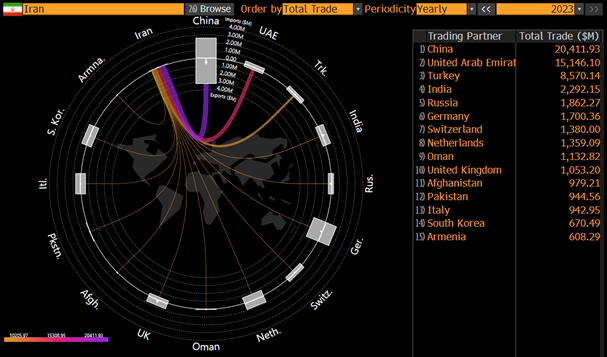 Exhibit 1: Iran Total Trade, 2023. Source Bloomberg (6).