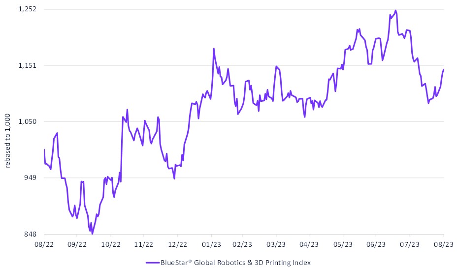 The BlueStar® Global Robotics & 3D Printing Index (BRB3D) which was up 17% in YTD performance, provides a sector exposure to industries like robotics, 3D printing, and computer-aided design segments.