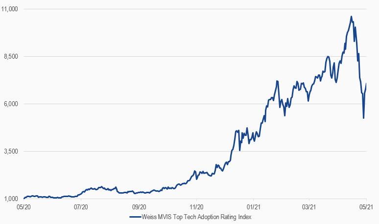 Source: MV Index Solutions. All values are rebased to 1,000. Data as of 26 May 2021.