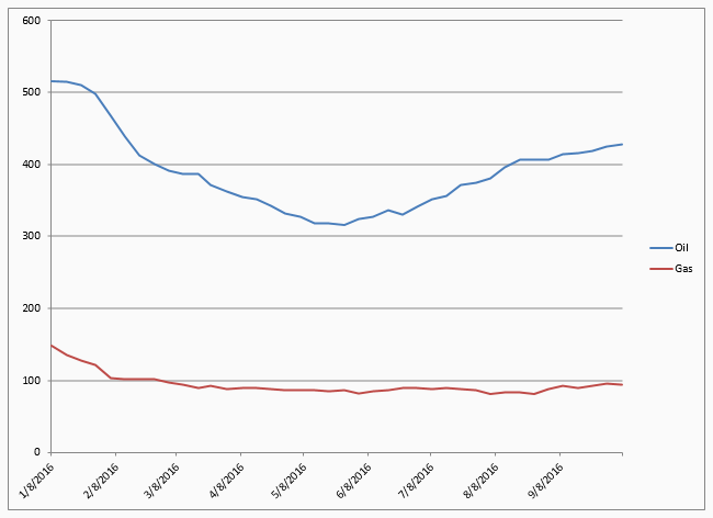 Any talk of a “rebound” in the rig count and an upsurge in shale oil production really should be taken with a pinch of salt. The uptick of 120 in the count between the ends of May and September this year accounts for only some 8.5% of the total number of rigs taken out of services in the past couple of years.